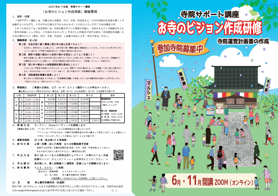 「お寺のビジョン作成研修」は、「寺院サポート講座」のカリキュラムです。是非ご参加ください。