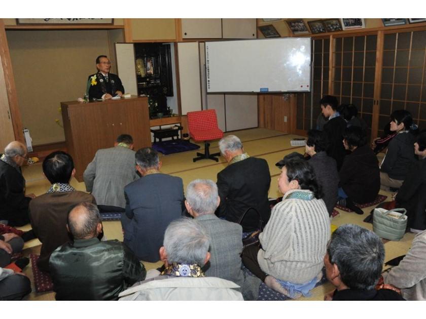 ようやく準備が整い開かれた第1回目の法座。講師はもちろん髙石住職です。梅野さん宅には50人ほどの人が集まりました。法座が終わった後、梅野さんは「ありがたかったぁ、うれしかぁ」と思った反面、「これは来年からもしないといけないなぁ、大変だけど頑張ろう」と思ったそうです。以来12年間、年に一度のペースを守り、続けています。