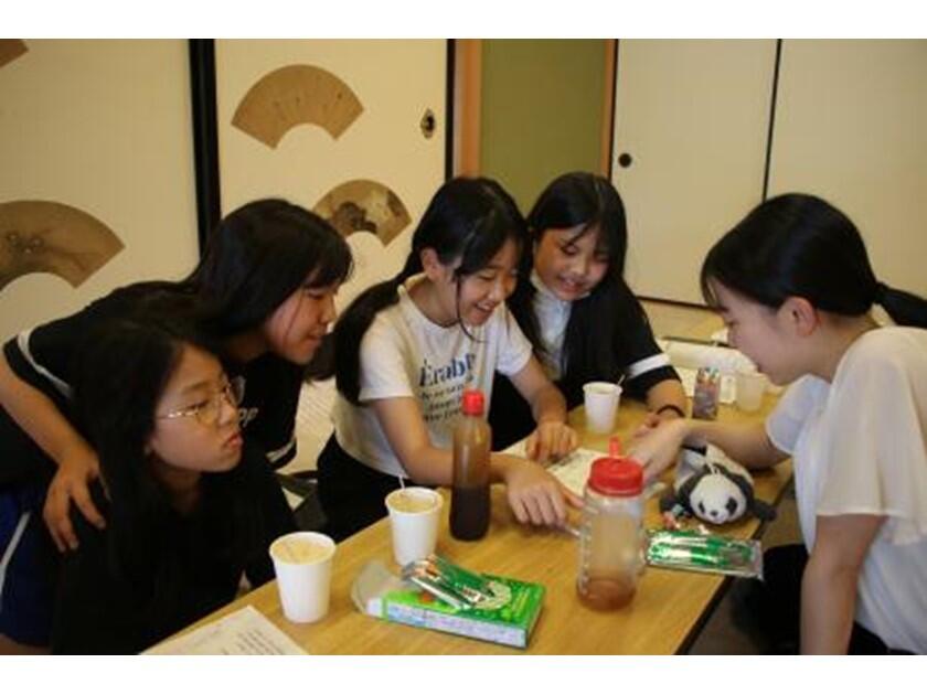 2024年7月24日には小学6年生7人が参加しました。左京区BBS会会長の出口花さんに見守られながら夏休みの宿題に取り組んだほか、明治国際医療大学の小西奈美准教授の指導でパステルアートにも挑戦し、パステルを削った粉を指にまぶして画用紙に絵を描き、〝色による癒しのひととき″を楽しみました。